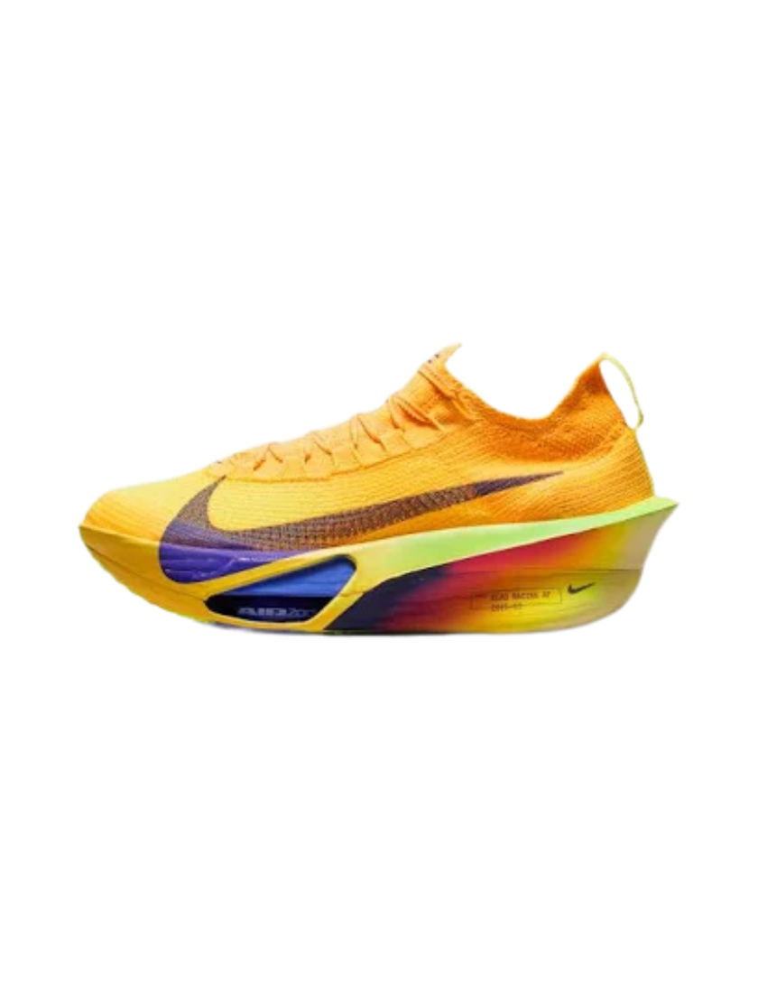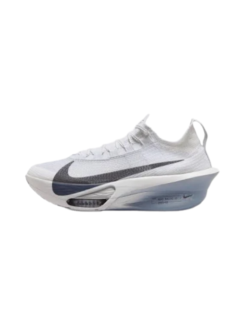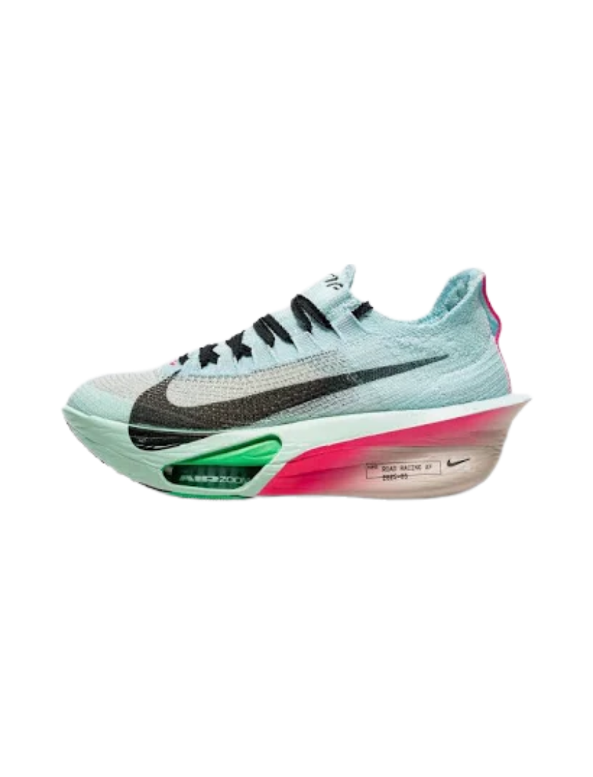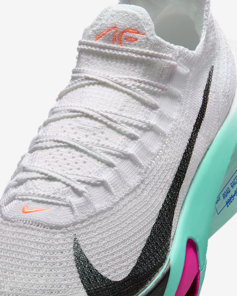 Nike Alphafly 3 Men's Road Racing Shoes Fine-tuned for marathon speed, the Alphafly 3 helps push you beyond what you thought possible. Three innovative technologies power your run: A double dose of Air Zoom units helps launch you into your next step; a full-length carbon fiber plate helps propel you forward with ease; and a heel-to-toe ZoomX foam midsole helps keep you fresh from start to 26.2. Time to leave your old personal records in the dust. Energy Return for Your Marathon Two forefoot Air Zoom units combine with ZoomX foam to store and return the energy back to you, powering every step. Propulsive Feeling A full-length carbon fiber plate delivers a propulsive sensation that helps you smoothly transition through every stride and tackle turns with confidence. Cushioned Ride Fully connected ZoomX foam creates an ultralight and cushioned feel, helping you stay fresh and comfortable from km 1 to 42.2. What's New About the Alphafly 3? The Alphafly 3 is Nike's lightest Alphafly ever, featuring a slightly wider carbon fiber plate for increased stability, a fully connected ZoomX foam midsole for smoother transitions and an all-new Atomknit upper designed for improved multidirectional containment and breathability. Notched laces offer a secure but soft lace-up. An integrated knit tongue with lofted padding helps alleviate lace pressure.