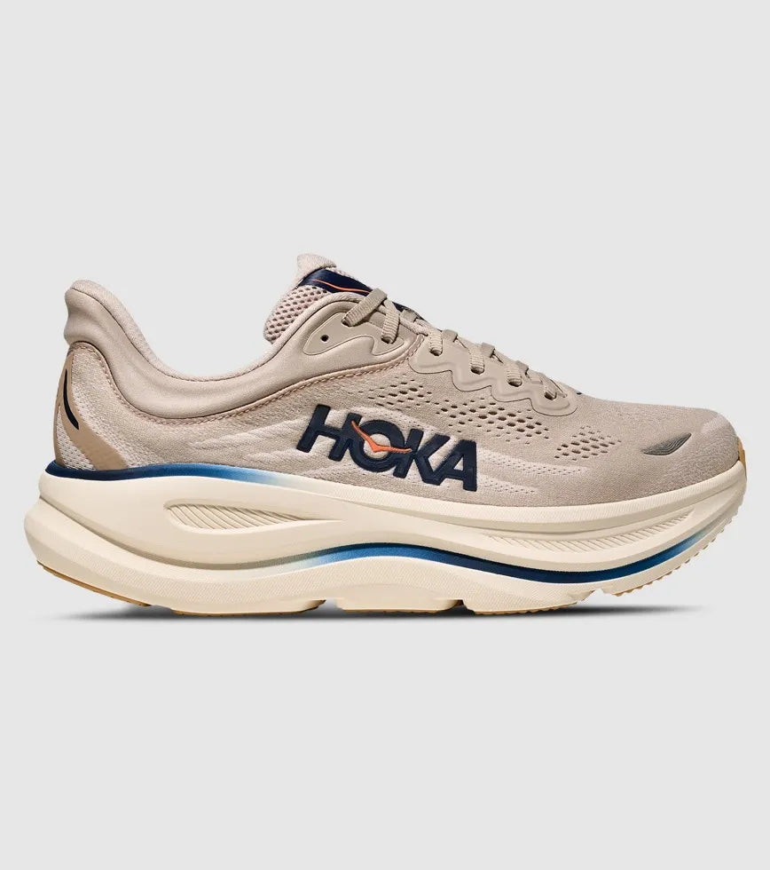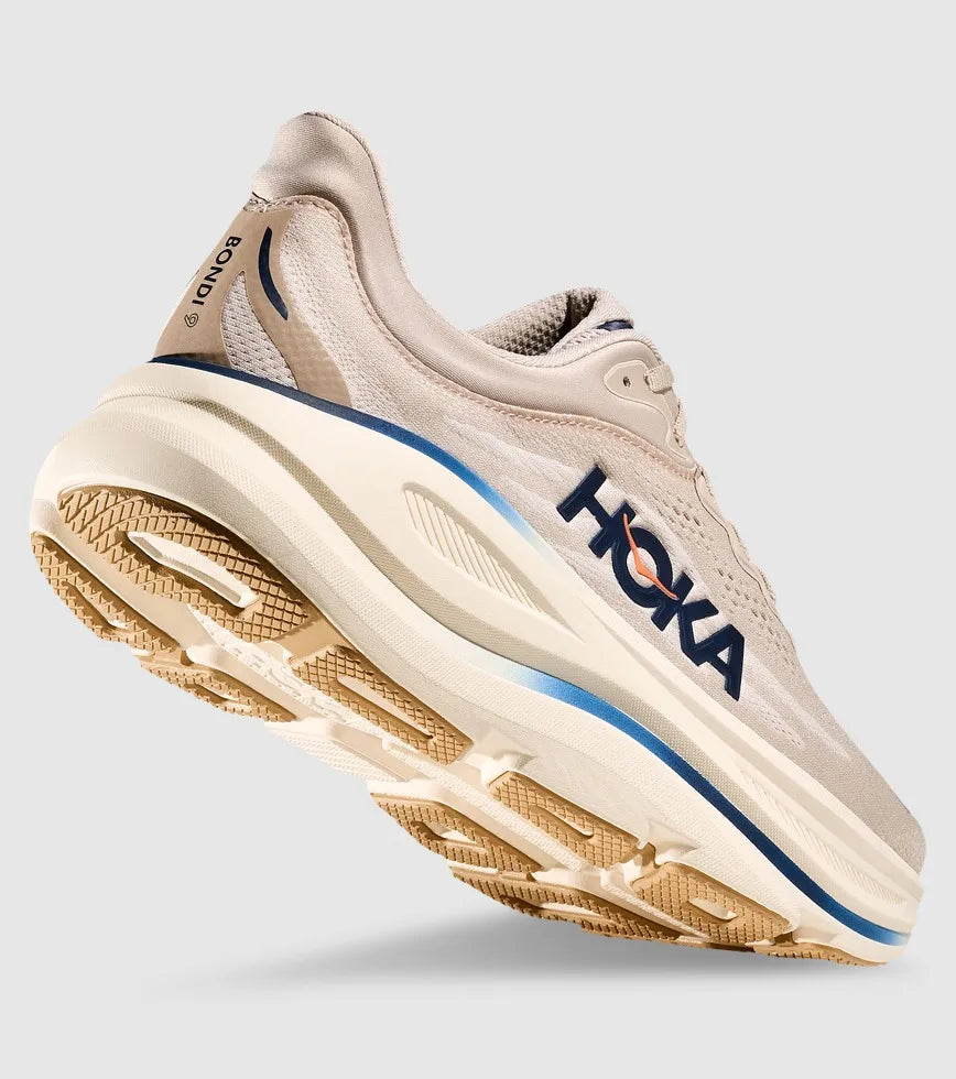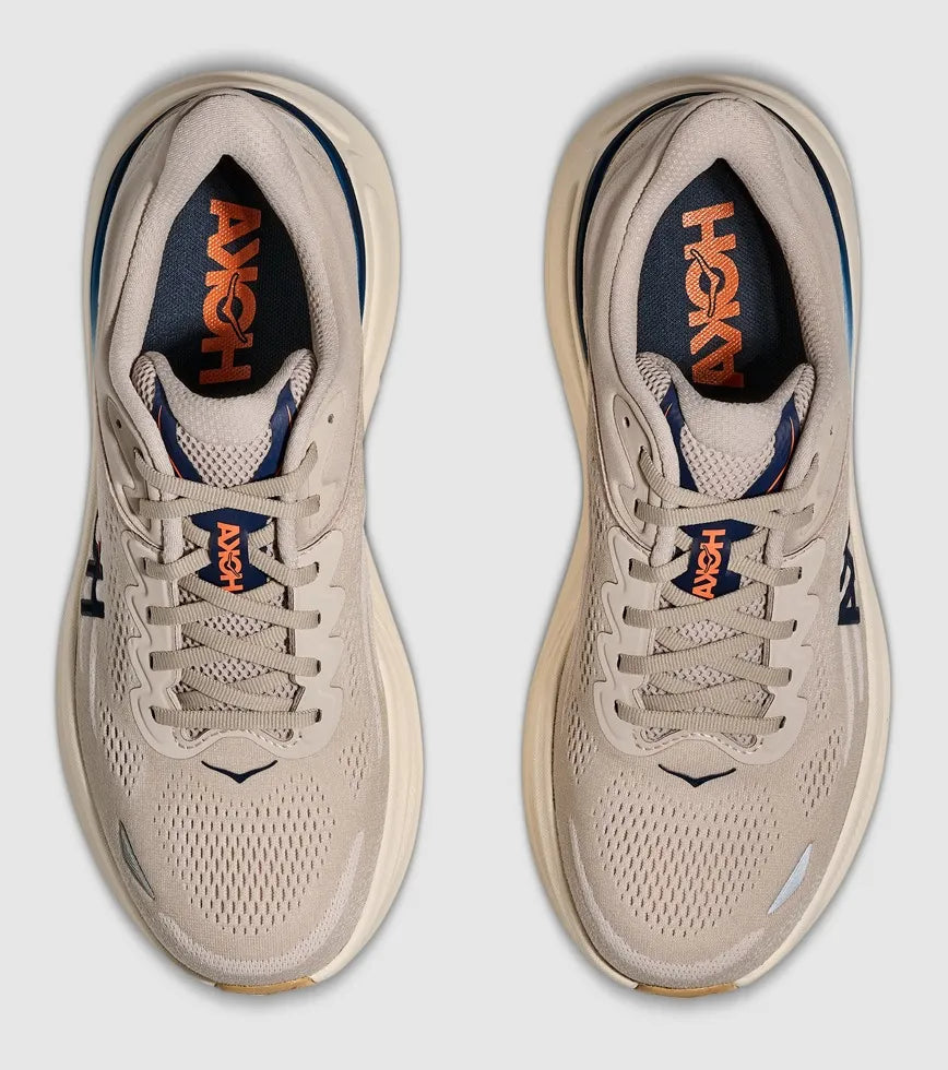 From Hoka - One of the hardest working shoes in the HOKA lineup, the Bondi 9 delivers peak plushness for everyday miles. Overhauled from top to bottom, Hoka have increased the stack height and added a new premium foam midsole to deliver that soft, resilient ride that’s become synonymous with the Bondi. Elevated with a 3D molded collar and structured knit upper with zonal breathability, this ultra-cushioned cult favourite has been finished with Durabrasion rubber to combat high wear zones.