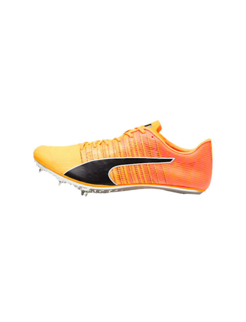 Designed specifically for athletes in need of maximum speed, Puma's evoSPEED collection incorporates the latest track technology and is ready to break records. Streamlined and stable, with a full-length Pebax plate for aggressive energy return, eight removable pins, brush-spike-inspired secondary traction, and a lightweight, breathable silhouette, the evoSPEED Brush will have you mastering the turns and flying through the straights.