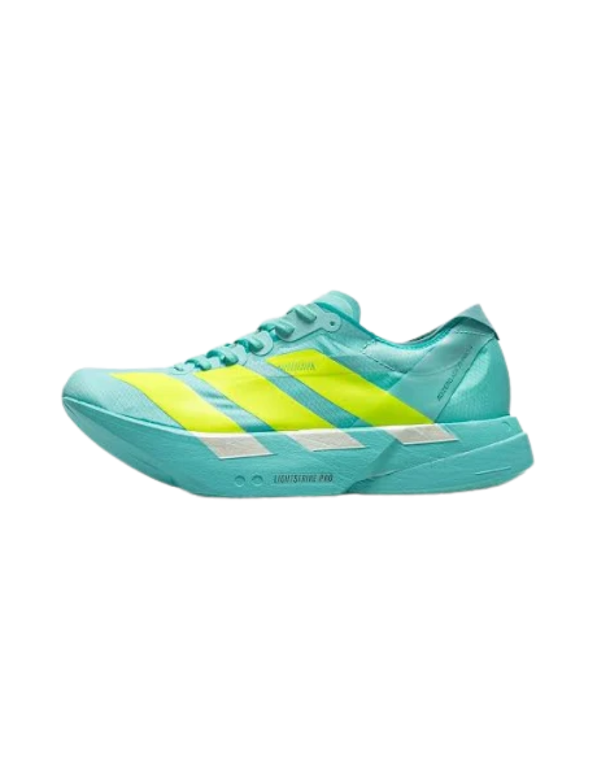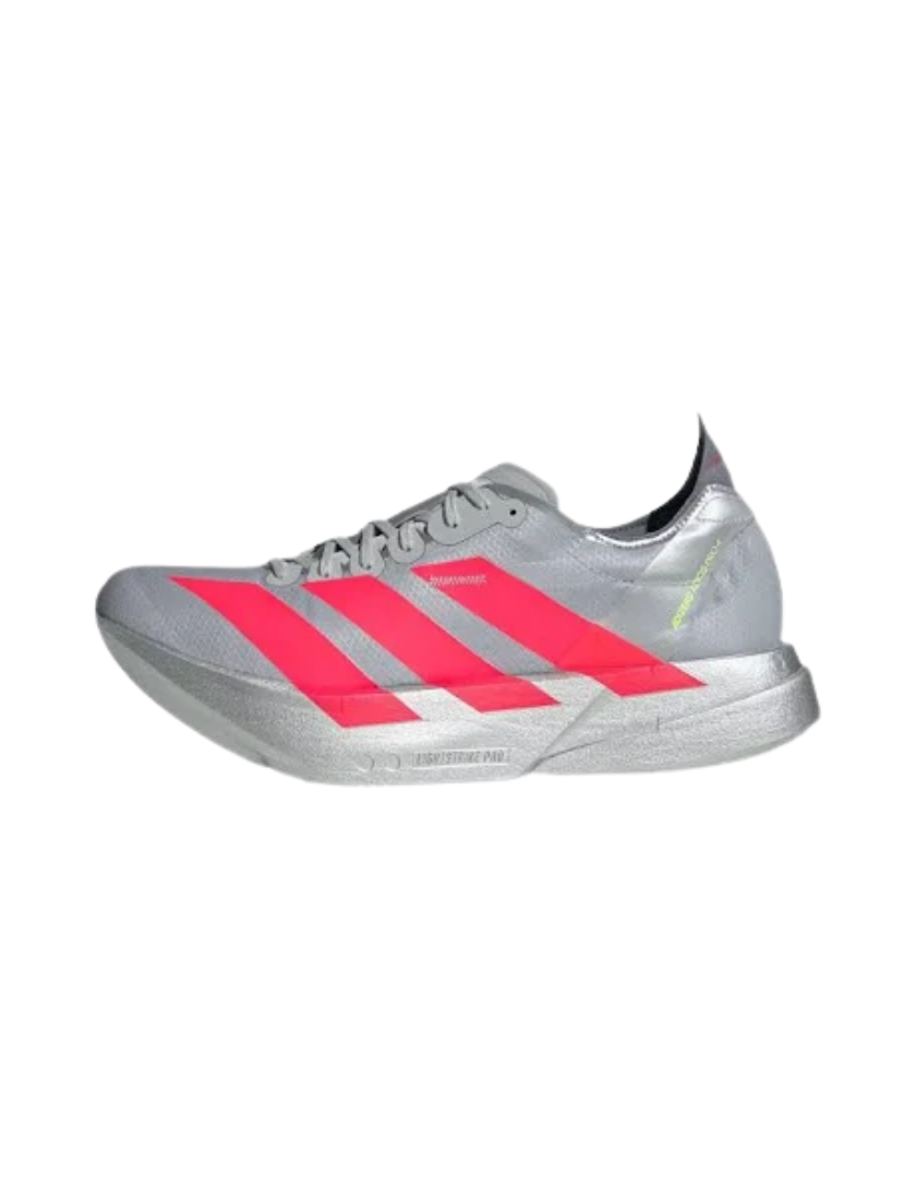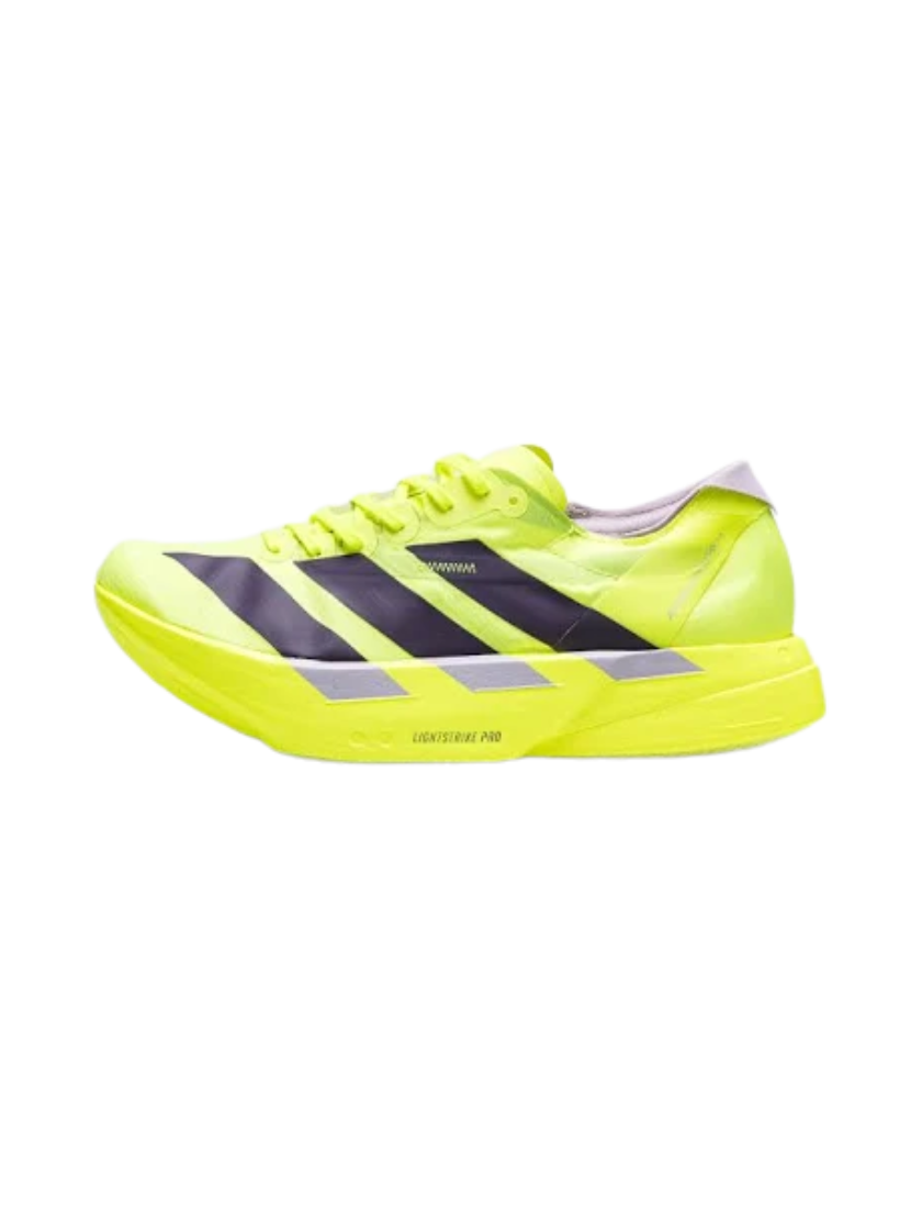 Proven to be the world's most winning shoe, the Adizero Adios Pro line is the pinnacle of Adizero Racing shoes. The Adios Pro 4 is made for fast runners who want to experience faster, with enhanced features designed to optimize running efficiency. Our carbon-infused ENERGYRODS 2.0 provide a seamless transition from heel to toe for a snappy, efficient stride. In the midsole, a new rocker point offers improved running economy. A double layer of our best-in-class ultralight LIGHTSTRIKE PRO ensures cushioning for every quick stride you take, helping you maintain energy over the long term. The shoe rides on an outsole built with Continental™ rubber for a no-slip transition during toe-off, as well as LIGHTTRAXION, designed to reduce weight without sacrificing grip.