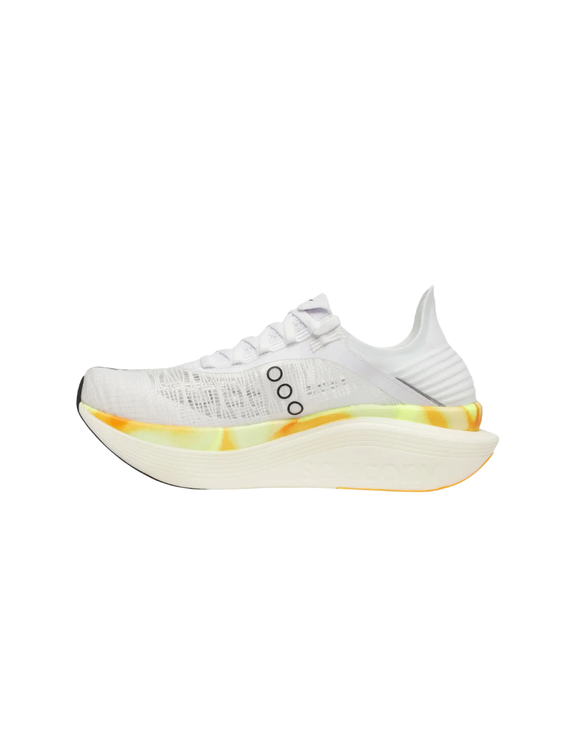 Unleash your speed with the Endorphin Elite 2, the next-generation supershoe from Saucony. Designed for competitive racing on the roads, this revolutionary shoe features Saucony’s most innovative and responsive foam ever, delivering unmatched energy return and cushioning. The full-length slotted carbon fiber plate provides a smooth underfoot transition with a propulsive feel. It is Saucony’s most aggressive race-day performer yet. With the Endorphin Elite 2, you’ll reach the starting line with the confidence that no one in the field is better prepared or better equipped.