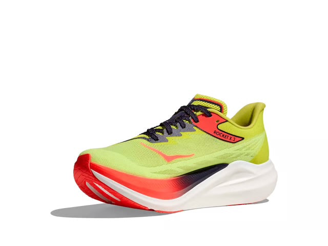 Built for achieving your personal best, the Rocket X 3 delivers a carbon-fiber super shoe that doesn’t skimp on support. Maintaining the same responsive, high-performance foam as its predecessor, Hoka have updated our pace-pushing carbon fiber plate with new winglets and employed a sticky rubber outsole to inspire confidence in variable conditions. Enlisting a single-layer engineered mesh upper for enhanced breathability and stitch-and-turn collar to help mitigate blisters, Hoka also removed the gusset for easier entry.