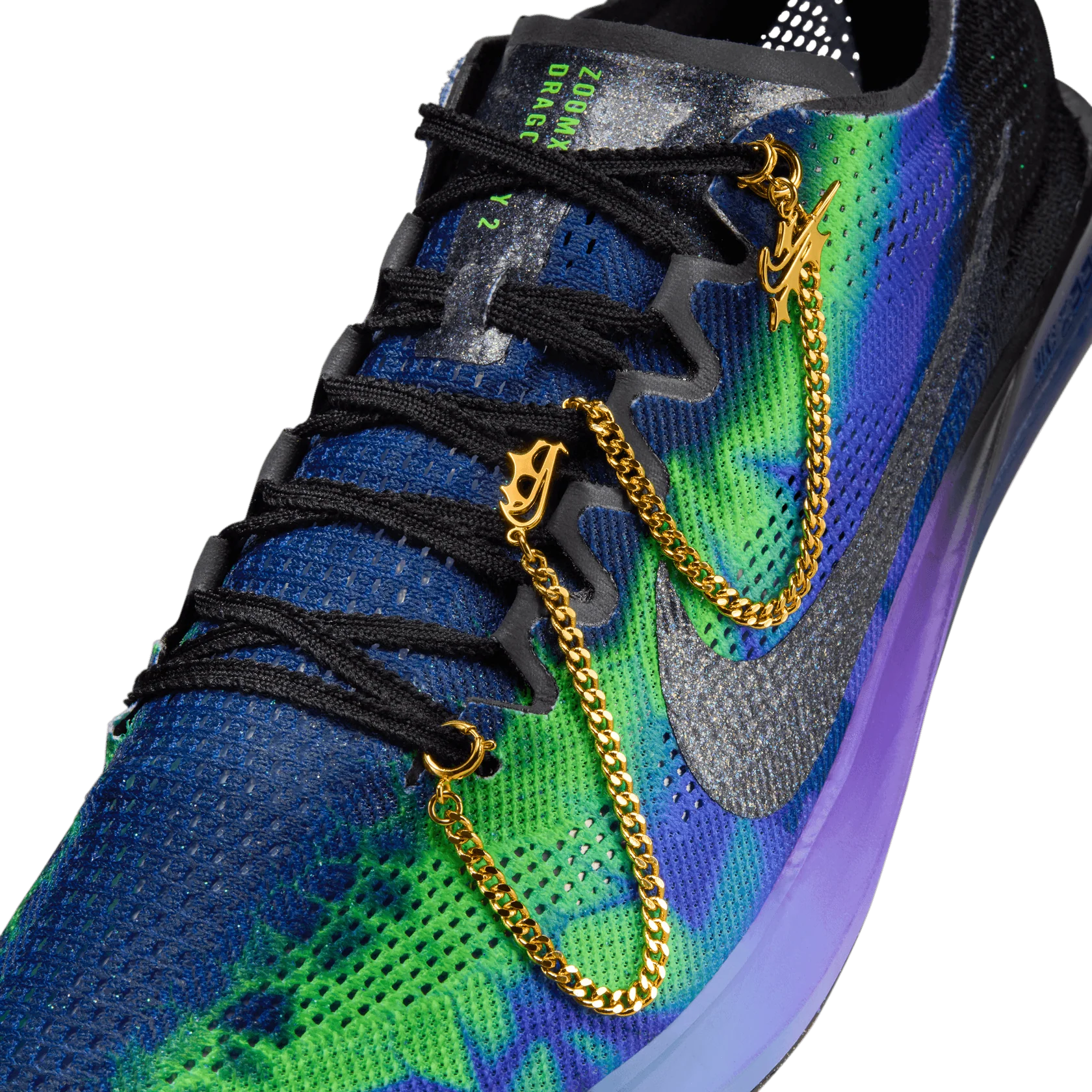 One of the fastest long-distance athletics spikes to ever cross the finishing line turns up the tempo even more. The Dragonfly 2's comfortable fit and propulsive feel are built to go the distance in races and key workouts. Updated spikes, full-length ZoomX foam and a lighter, more responsive plate are ready for speed and stamina.