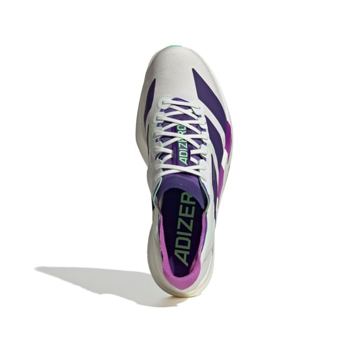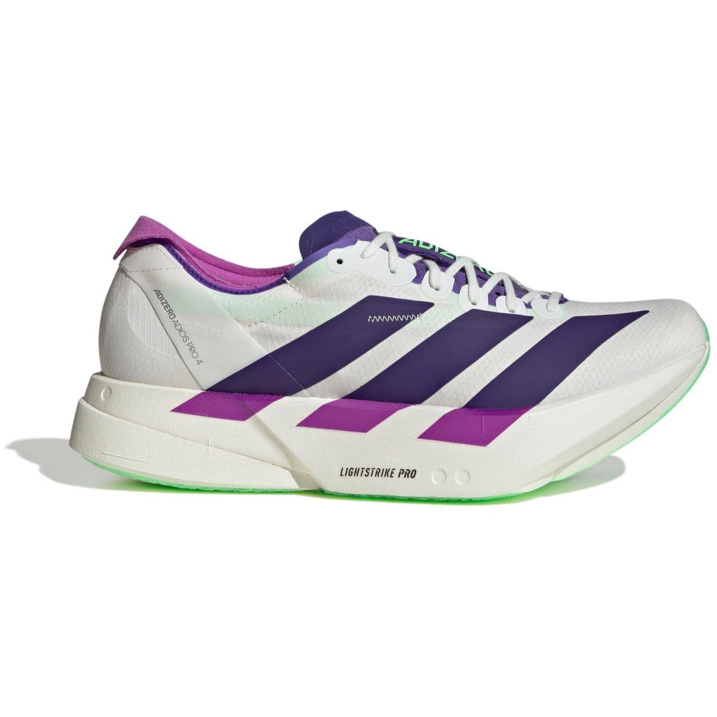 Proven to be the world's most winning shoe, the Adizero Adios Pro line is the pinnacle of Adizero Racing shoes. The Adios Pro 4 is made for fast runners who want to experience faster, with enhanced features designed to optimize running efficiency. Our carbon-infused ENERGYRODS 2.0 provide a seamless transition from heel to toe for a snappy, efficient stride. In the midsole, a new rocker point offers improved running economy. A double layer of our best-in-class ultralight LIGHTSTRIKE PRO ensures cushioning for every quick stride you take, helping you maintain energy over the long term. The shoe rides on an outsole built with Continental™ rubber for a no-slip transition during toe-off, as well as LIGHTTRAXION, designed to reduce weight without sacrificing grip.