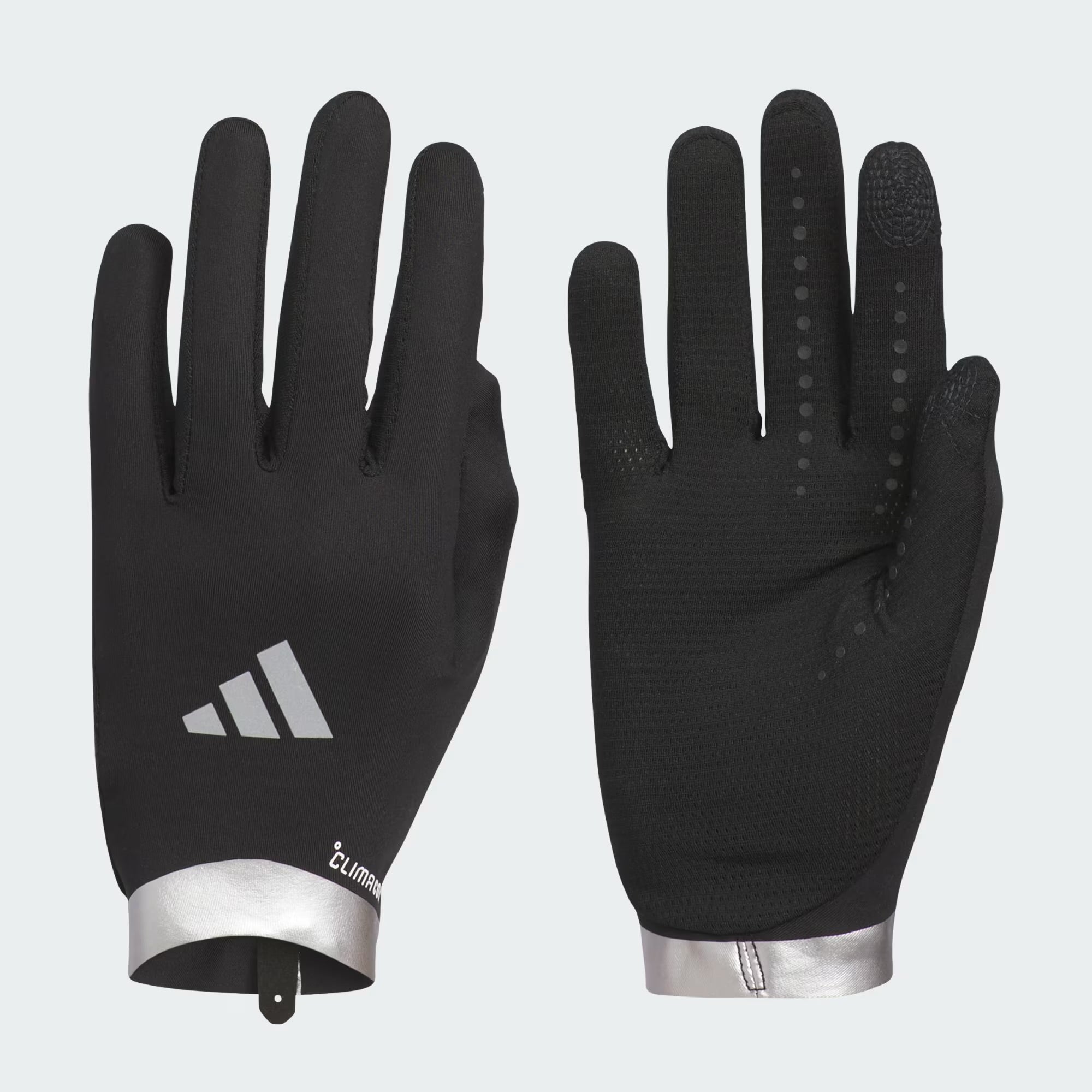 Soft and breathable, these adidas running gloves help keep your hands comfortable as you run in cool weather. Grips on the fingers help you use your phone, and the touchscreen compatible fingertip and thumb mean you can access your music, maps and more without taking your gloves off. Reflective details stand out in low light.