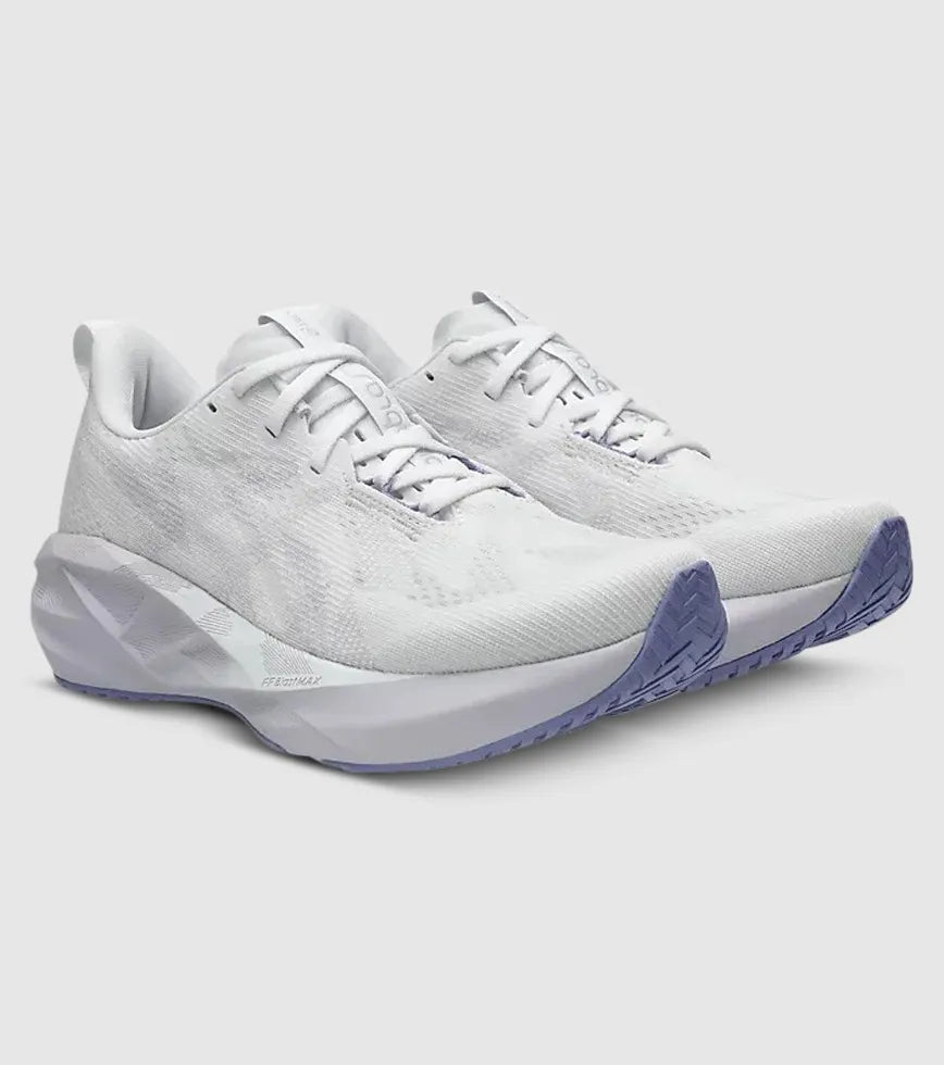 The NOVABLAST™ 5 running shoe is a lightweight, bouncy, energised trainer for uptempo paces, light intervals and short distances on race day. This shoe features a midsole and outsole geometry that helps produce an energised ride.