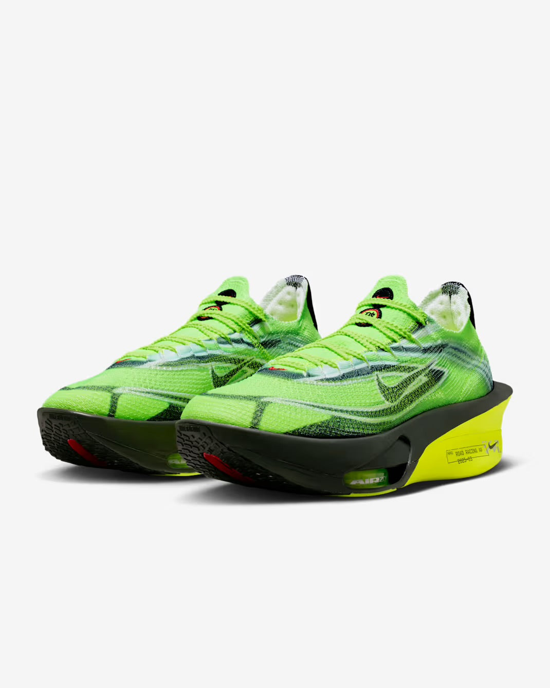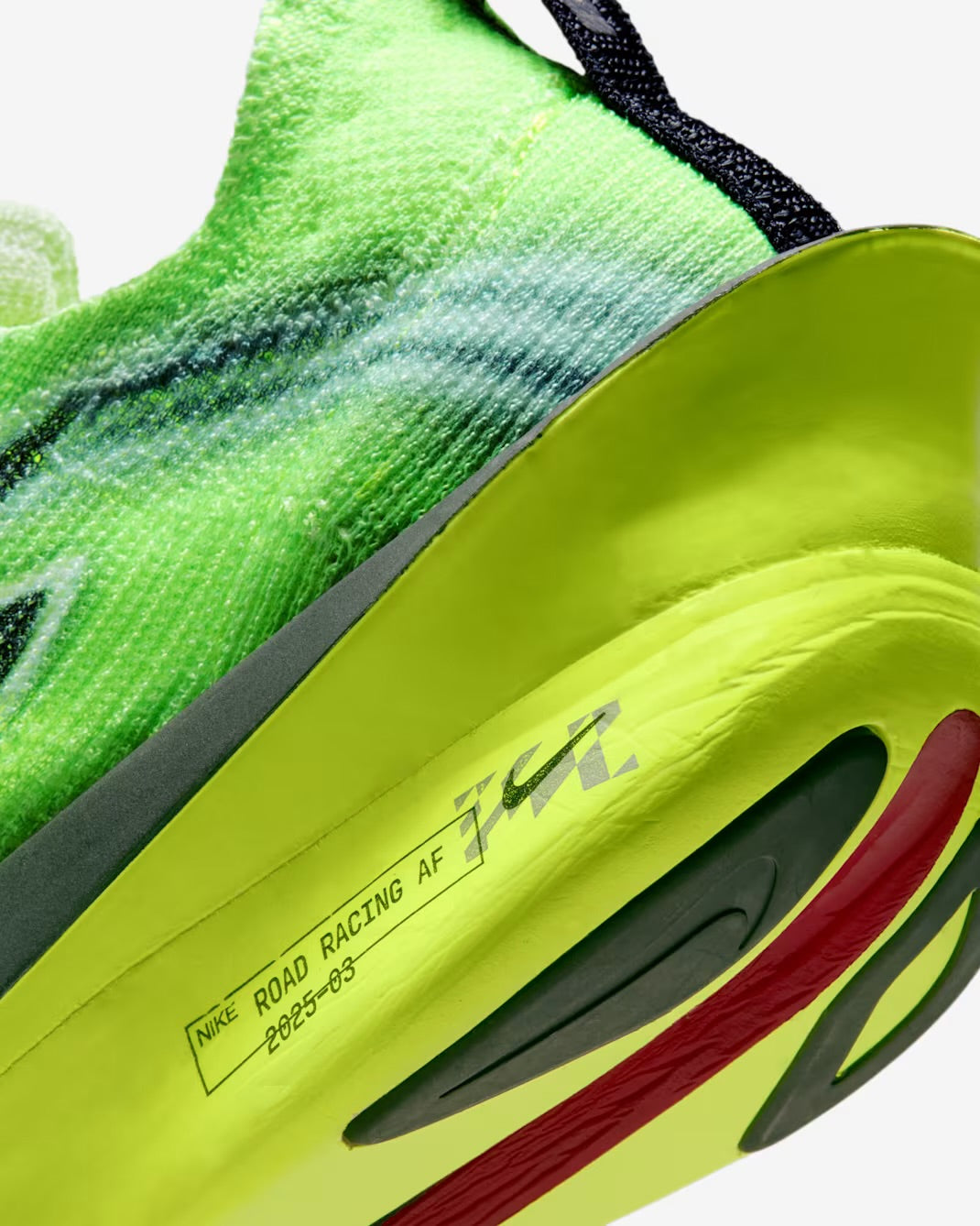 Nike Alphafly 3 Men's Road Racing Shoes Fine-tuned for marathon speed, the Alphafly 3 helps push you beyond what you thought possible. Three innovative technologies power your run: A double dose of Air Zoom units helps launch you into your next step; a full-length carbon fiber plate helps propel you forward with ease; and a heel-to-toe ZoomX foam midsole helps keep you fresh from start to 26.2. Time to leave your old personal records in the dust. Energy Return for Your Marathon Two forefoot Air Zoom units combine with ZoomX foam to store and return the energy back to you, powering every step. Propulsive Feeling A full-length carbon fiber plate delivers a propulsive sensation that helps you smoothly transition through every stride and tackle turns with confidence. Cushioned Ride Fully connected ZoomX foam creates an ultralight and cushioned feel, helping you stay fresh and comfortable from km 1 to 42.2. What's New About the Alphafly 3? The Alphafly 3 is Nike's lightest Alphafly ever, featuring a slightly wider carbon fiber plate for increased stability, a fully connected ZoomX foam midsole for smoother transitions and an all-new Atomknit upper designed for improved multidirectional containment and breathability. Notched laces offer a secure but soft lace-up. An integrated knit tongue with lofted padding helps alleviate lace pressure.